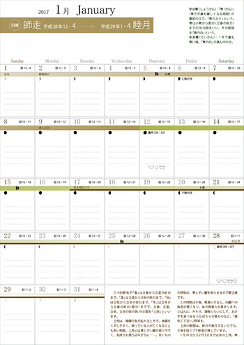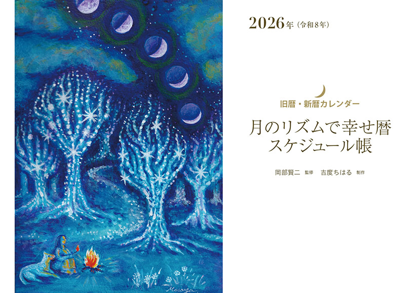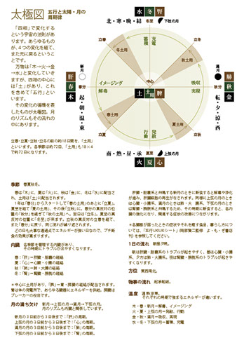 ・「月のリズムで幸せ暦」の特徴にあげている内容をほぼそのまま掲載しているが、カレンダーにない「太極図(五行と太陽・月の周期律)」を加えている。