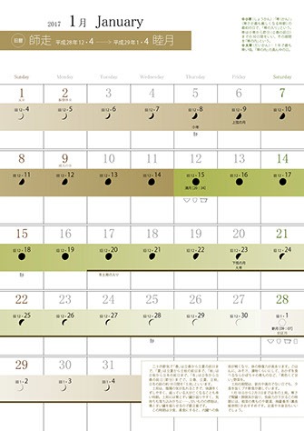 生活する上で困らないよう形態は新暦を採用し、旧暦と月の状態がはっきりわかるようにしています。季節の節目を表す「二十四節気」や「雑節」、旧暦の「五節句」も記載し、季節ごとに気をつけたいことや、おすすめの食べ方、過ごし方などのコラムもあり、玄米甘酒やあずき入り玄米ごはん、葛湯、梅醤番茶などのレシピも載せています。